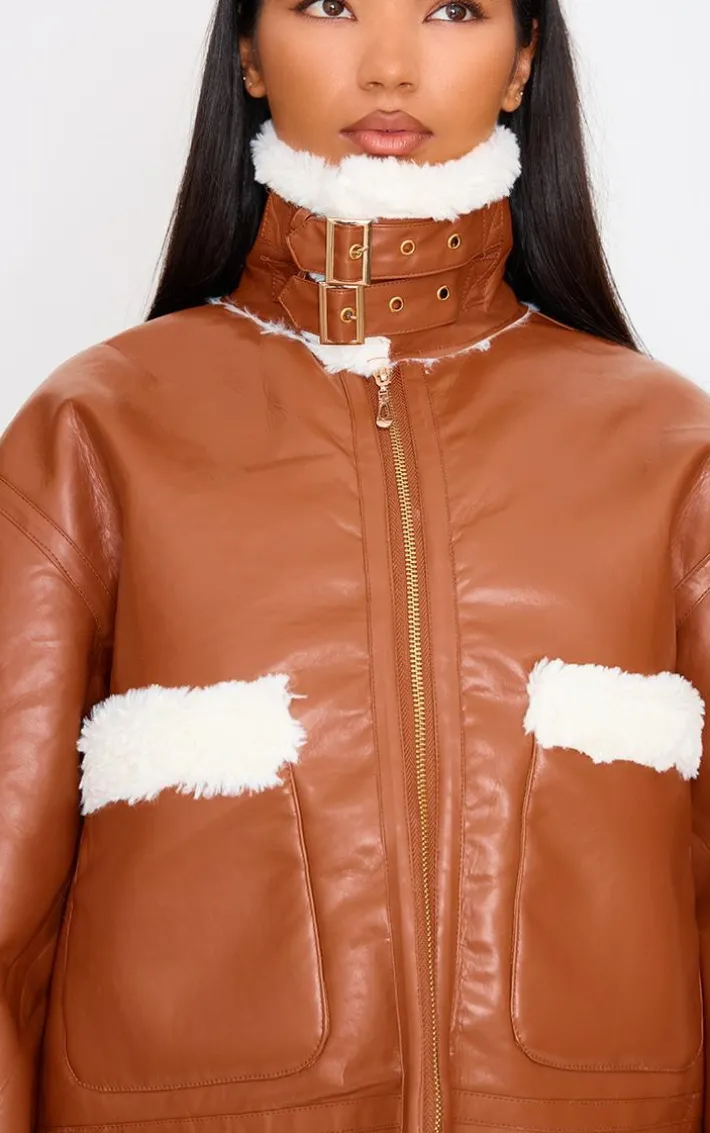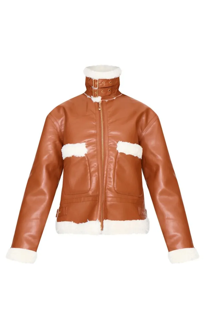 Layer up in style with this camel faux fur trim faux feather aviator jacket. This jacket is brought to you in a camel faux leather material with a faux fur trim, how could you turn this down? This jacket is here to take your A/W wardrobe to the next level. Complete the look by layering this over your outfit of the day, some heeled boots and accessories for a look like no other.