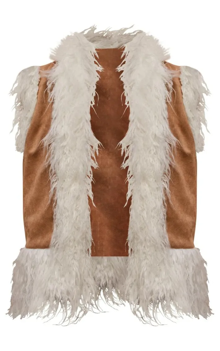 Level up any look this season with this camel faux fur trim faux suede vest. Made from a camel faux suede material with a faux fur trim and a figure-flattering fit, we’re obsessed. You are sure to be setting trends wherever you step foot in this vest and we know you won’t be able to resist adding it to your basket. Team with a washed mini skirt, long-sleeve top, and knee-high boots for a flawless finish.
