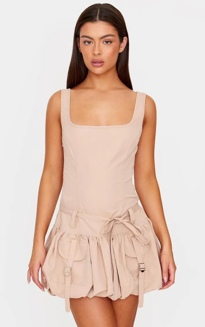 Work your styling techniques to make this camel square neck puffball dress suit any occasion. Made from a camel hue material with a square neckline and puffball skirt, this dress is a must have. Team with chunky loafers and gold accessories for a look like no other.