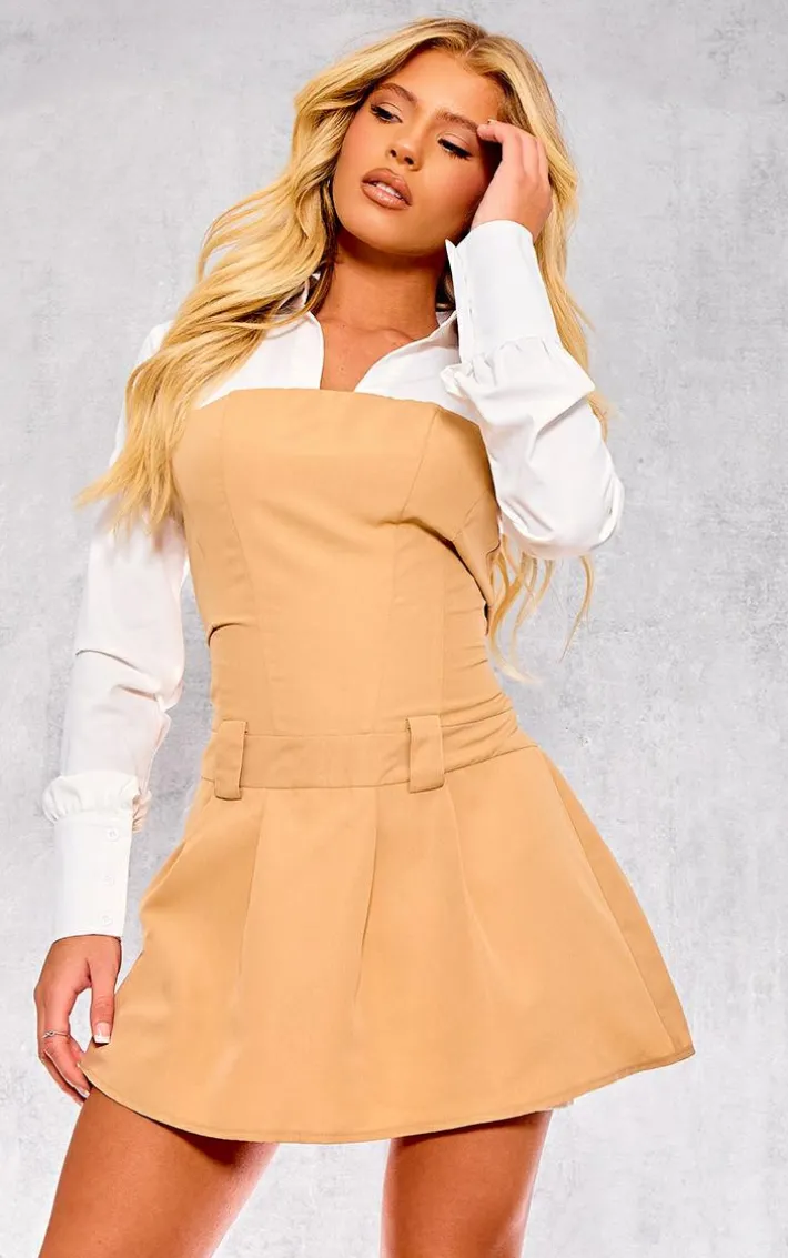 Set major trends with this camel tailored contrast pleated shirt dress. Brought to you in a camel material with a tailored fit and a contrast pleated design, we are seriously obsessed. This shirt dress is sure to have you standing out from the rest. Team with your fave accessories and a pair of heels to finish off the look we are loving.