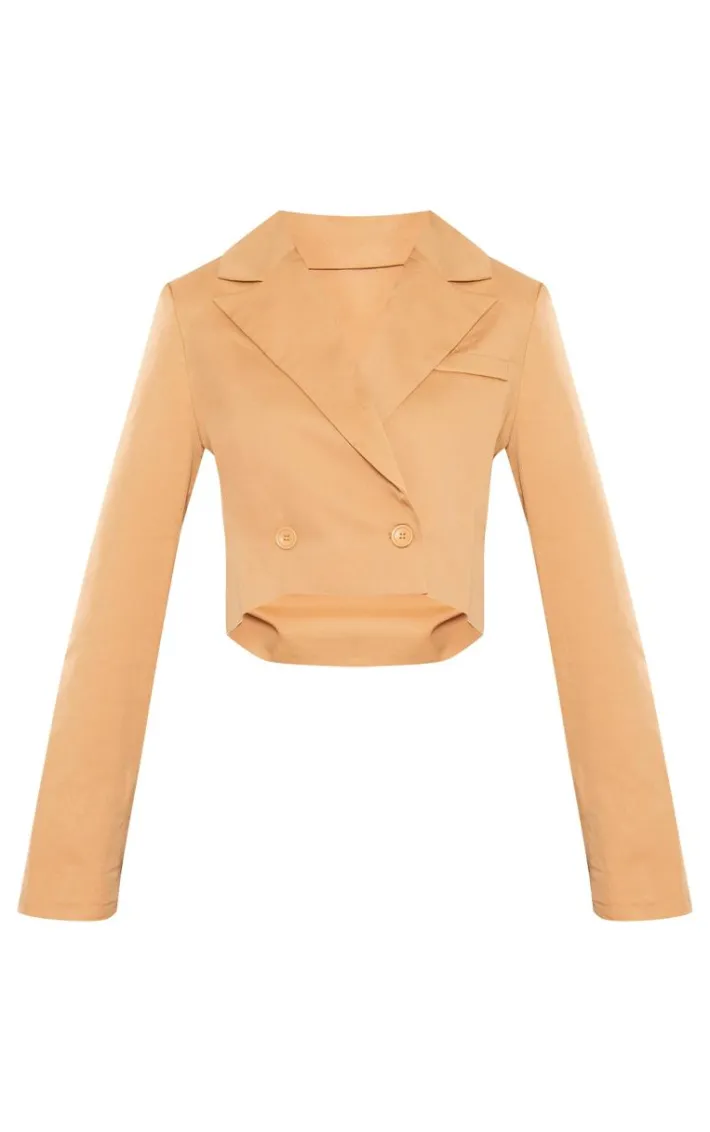 Add some chic tailoring to your look with this blazer. Featuring a camel woven material with shoulder pad detailing and a cropped fit, we’re obsessed. Team this with faux leather bottoms and clear strap heels for a look that will have all eyes on you.