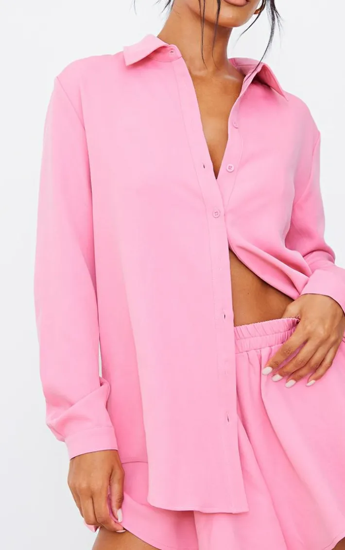 Add a pop of pink to your new season wardrobe with this candy pink long sleeve oversized shirt. Brough to you in a dreamy candy pink hue material with a button through design, long sleeves and an oversized fit, what more could you need? We are loving this oversized shirt styled with the matching shorts, a bralet and tie up heels for a weekend-worthy look that is sure to make you stand out from the crowd.
