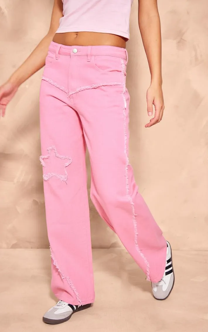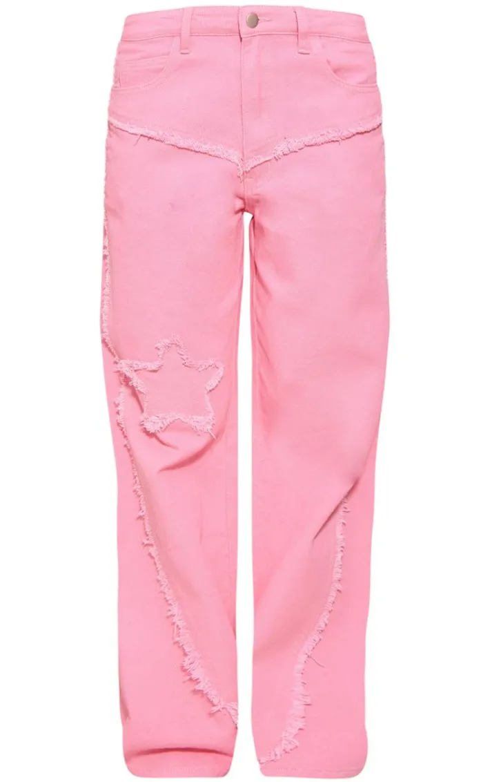 Go for all the fierce vibes this season with these statement candy pink raw hem detail star applique wide leg jeans. With a candy pink material, a star applique detail and a wide leg design, these jeans are here to help show off your confident side. Team with your fave top and minimal accessories for a look everyone will want.