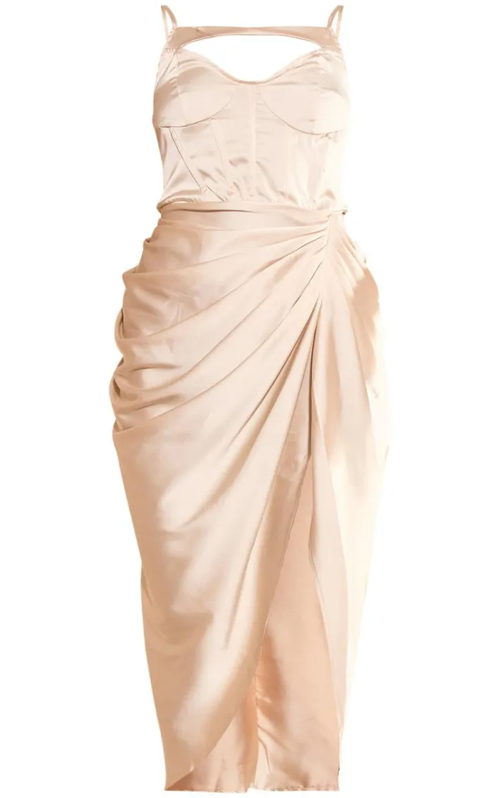 Found some last-minute weekend plans and need an unreal ‘fit? Then we have you covered with this styling staple, a champagne satin corset detail midi dress. With a champagne satin material with a corset detail and a midi length, we’re obsessed. Work your styling techniques and add a high heels and accessories for a weekend-worthy finish that will gain all the likes.