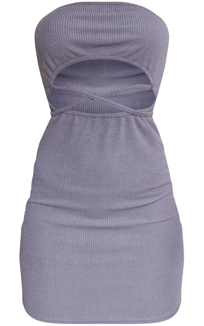 Your weekend wardrobe wouldn’t be complete without this charcoal bandeau cut out front crinkle rib bodycon dress, it is perfect for your next nightand beyond. This dress features a charcoal hue crinkle ribbed material with a cut out from design and a figure-flattering fit, we’re obsessed. Team this bodycon dress with slip-on heels and a shoulder bag for a fool proof finish.
