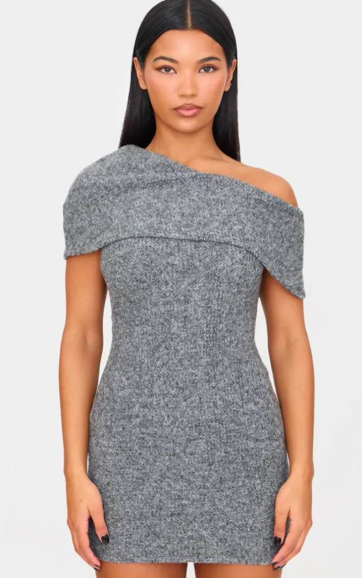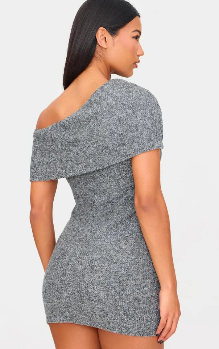 This charcoal brushed rib asymmetric bodycon dress is a must have in your weekend collection. Brought to you in an edgy charcoal shade, with a luxe brushed rib material and asymmetric design, what’s not to love? Team with a pair of faux leather loafers and a shoulder bag for a look that won’t go unnoticed.