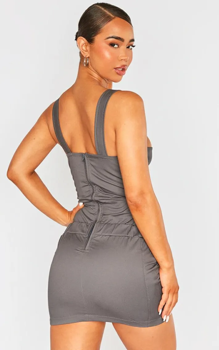 Take your new season style game to the next level with this charcoal cargo cut out buckle detail bodycon dress, we’re seriously obsessed. This bodycon dress features a charcoal material with a cut out design and a buckle detail, what more could you want? Pair this cargo dress with chunky boots and a shoulder bag for a look that will bring all the edge.