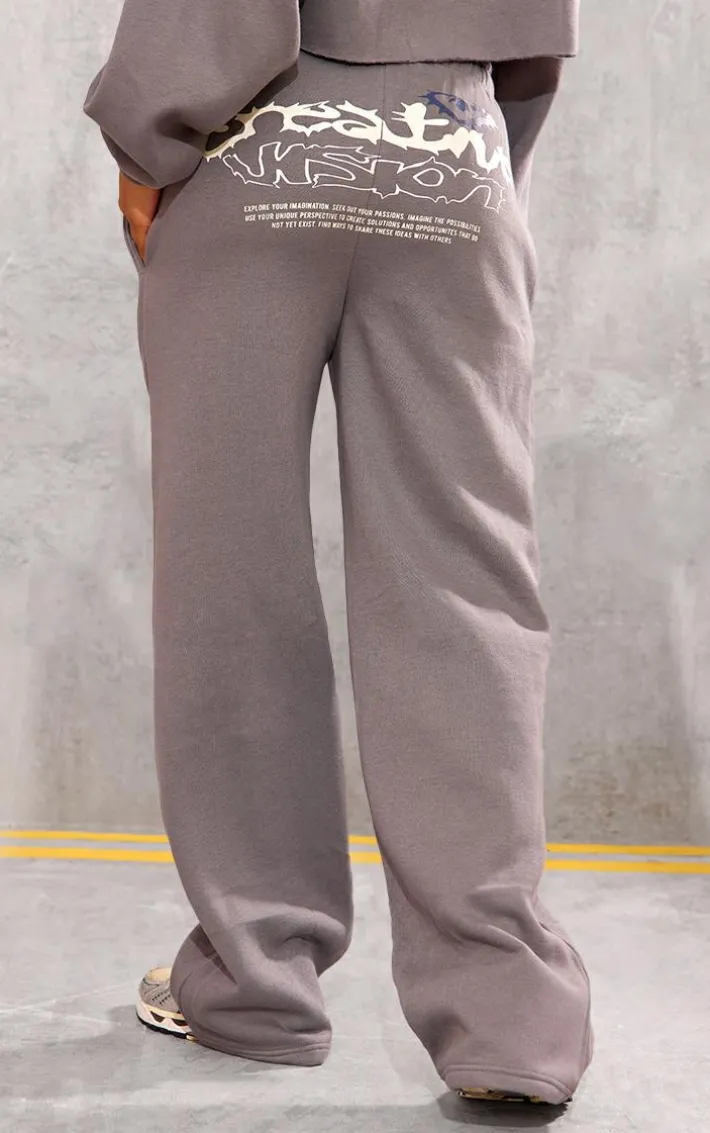 These charcoal Graphic oversized wide leg sweatpants are here to solve all of those what to wear dilemmas. Brought to you in a charcoal material with a Graphic design and an oversized fit, what more could you want? These wide leg sweatpants are perfect for those off-duty days and beyond. Team with the matching zip hoodie and your fave accessories to finish off the look.