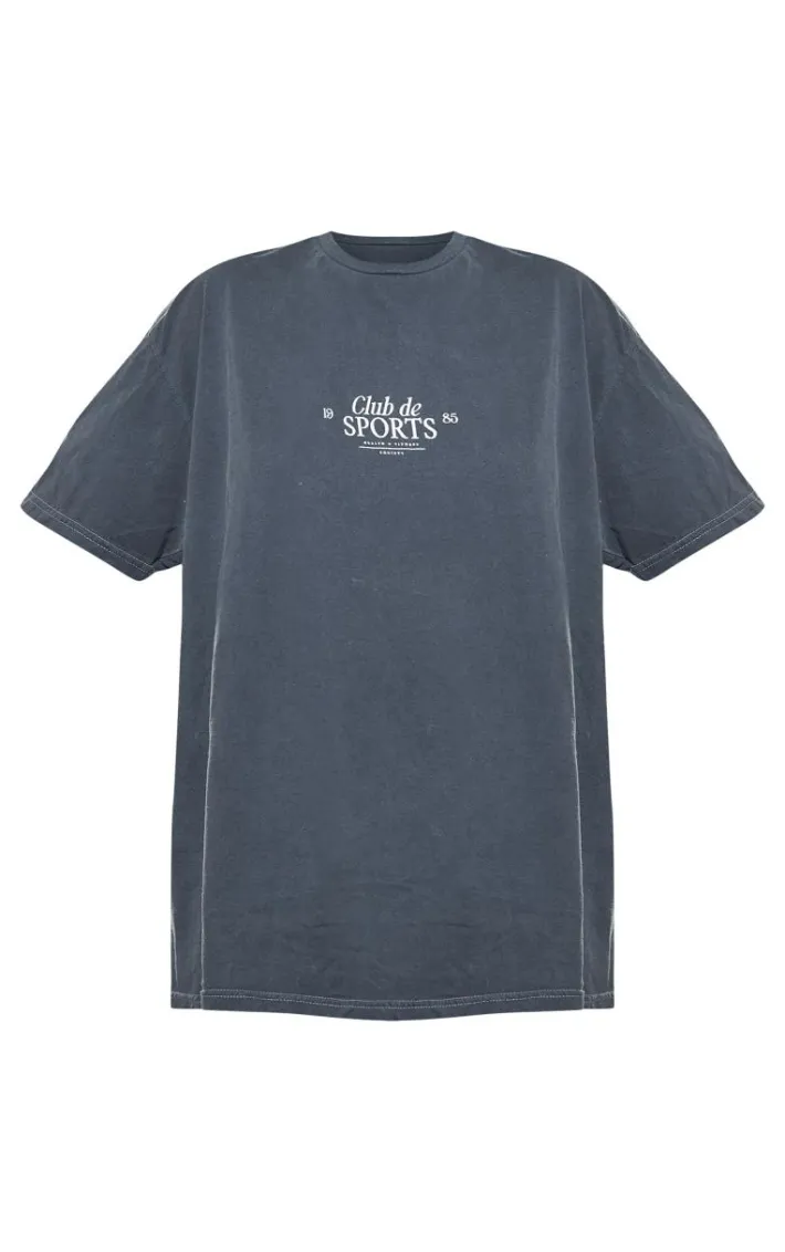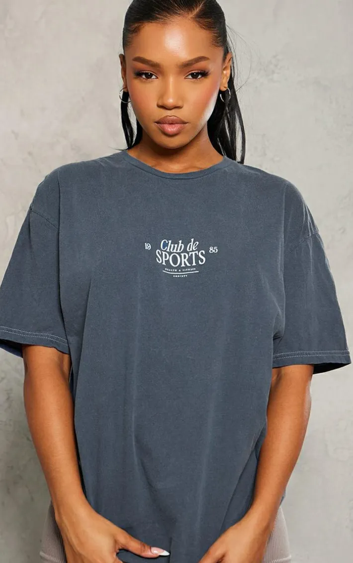 This charcoal grey club sports Graphic oversized t-shirt is a must-have for your off-duty wardrobe. Made with a soft charcoal grey fabric, an oversized t-shirt fit and featuring a ‘Club de Sports’ Graphic, we are obsessed. Pair with some seamless rib shorts, your fave sneakers and hoop earrings for the ultimate athleisure ‘fit