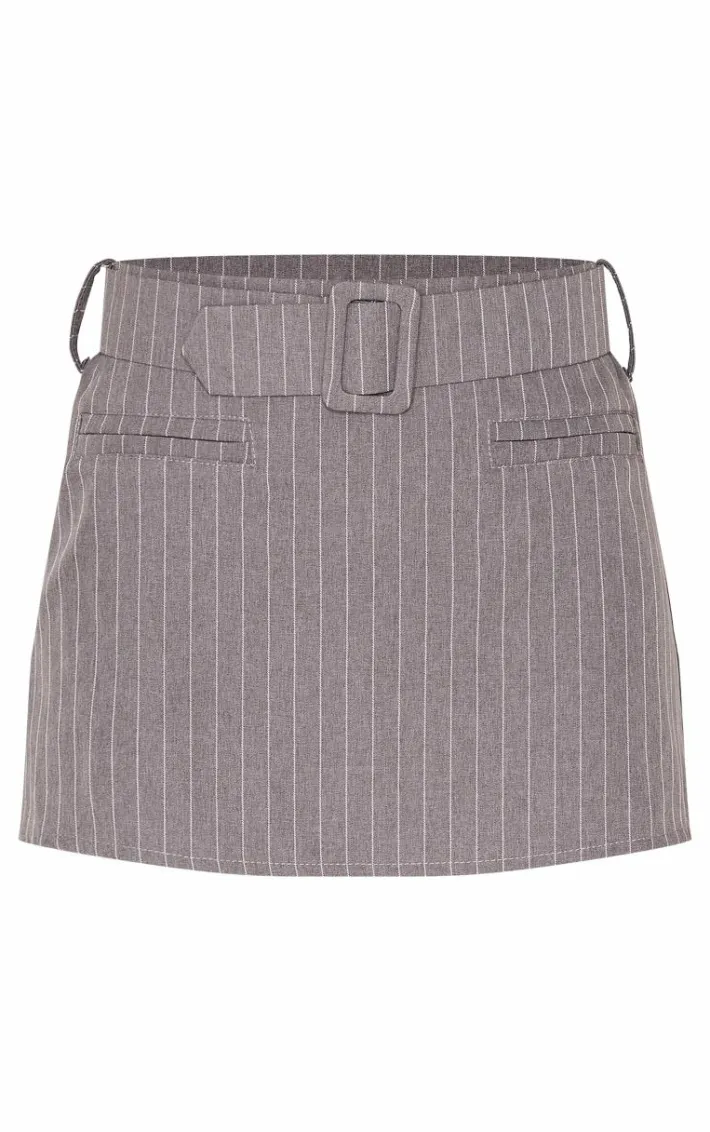 This charcoal pinstripe belted mini micro skirt is all the new you need for the season ahead. Brought to you in an edgy charcoal hue, with a pinstripe design and belted detail, this mini skirt is sure to give a flattering finish. Team with a burgundy faux leather jacket and knee length boots for a chic finish that won’t go unnoticed.