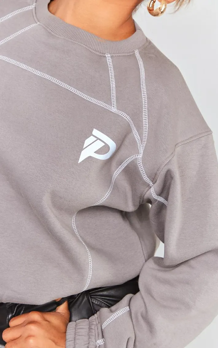 Say hello to your new season staple with this charcoal reflective p printed exposed stitching oversized Sweatshirt. Brought to you in a charcoal material with a reflective design and a ‘P’ printed exposed stitching detail, what more could you want? Its oversized fit is all you need to feel seriously chilled. What more could you want ? Style with some faux leather pants and a pair of gold hoops for a look that has you being the topic of everyone’s conversation.