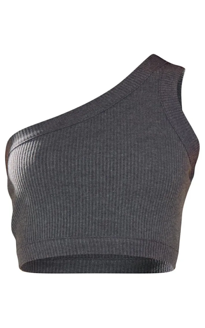 Get your new season ‘fit on point with this charcoal rib one shoulder strappy crop top. Brought to you in a charcoal rib material with a one shoulder design and a cropped fit, what more could you want? We are loving this crop top styled with the matching midi skirt and chunky sneakers for an effortless everyday look that is sure to earn you some serious style points.