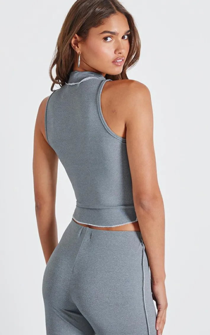 Amp up your off duty wardrobe with this charcoal seam detail high neck sleeveless long top. Brought to you in a charcoal hue material with a seam detail, high neck feature and sleeveless design, how can you not fall in love? Style with the matching flares and fresh kicks for a casual vibe we can’t help but obsess over.