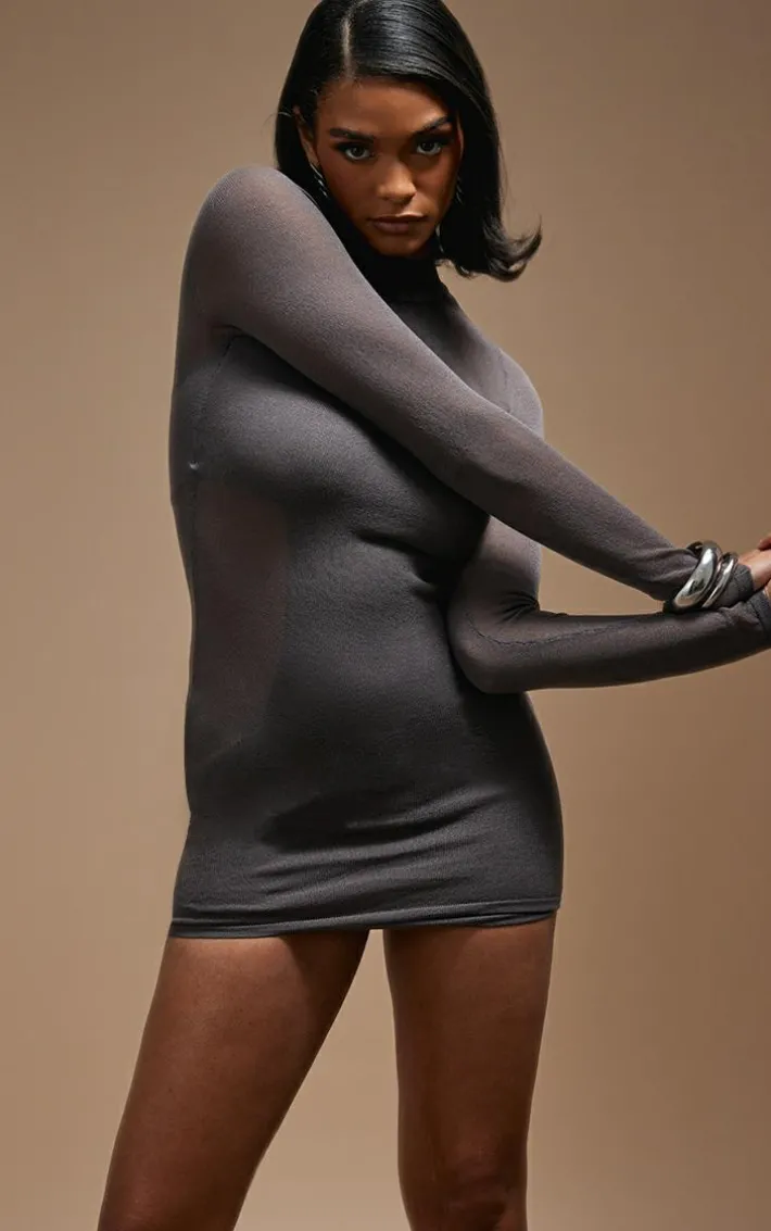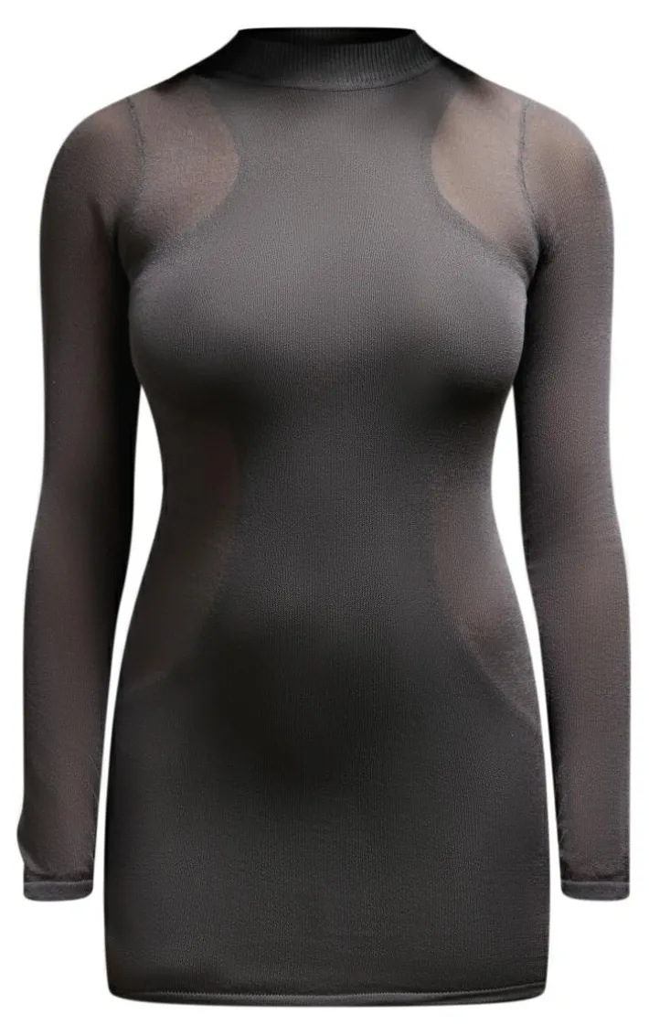 Be ready to set trends with this dress. Featuring a charcoal sheer knit material with a racer design, long sleeves and a figure-hugging fit, what’s not to love? Simply add black heels boots, an oversized jacket and mini bag for a look like no other.