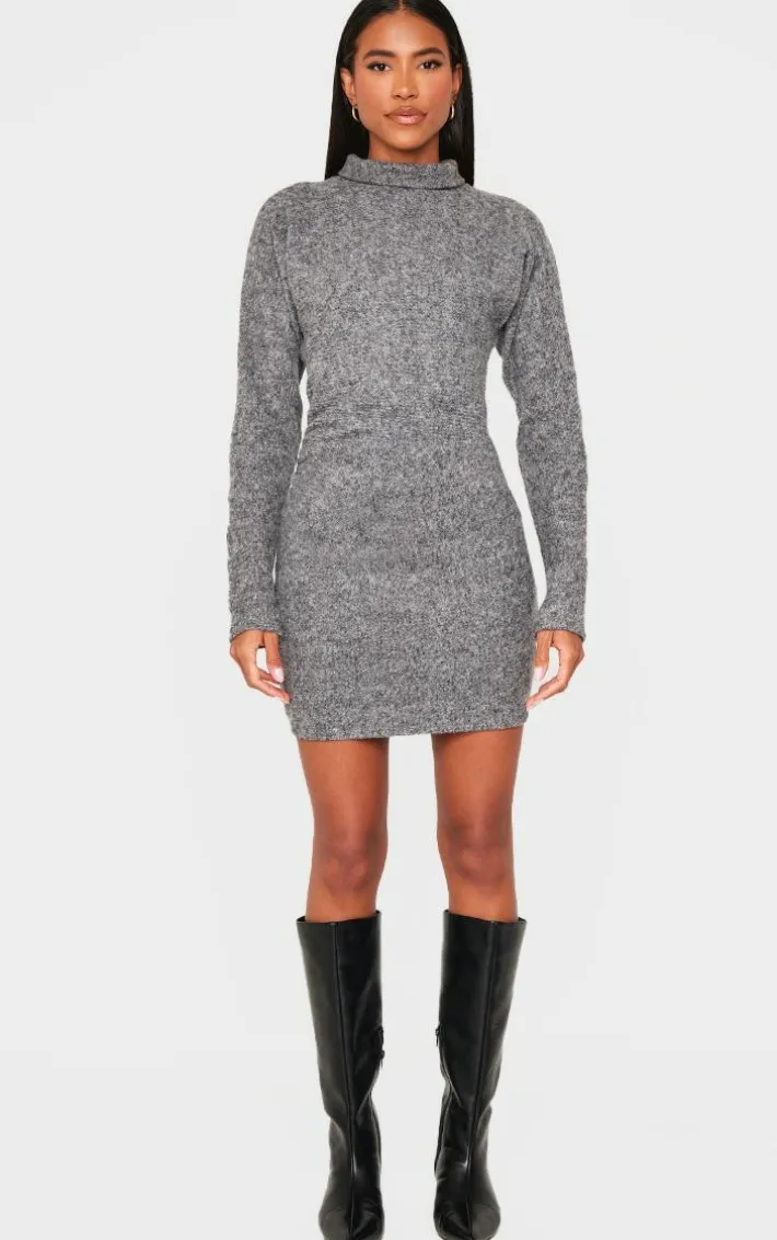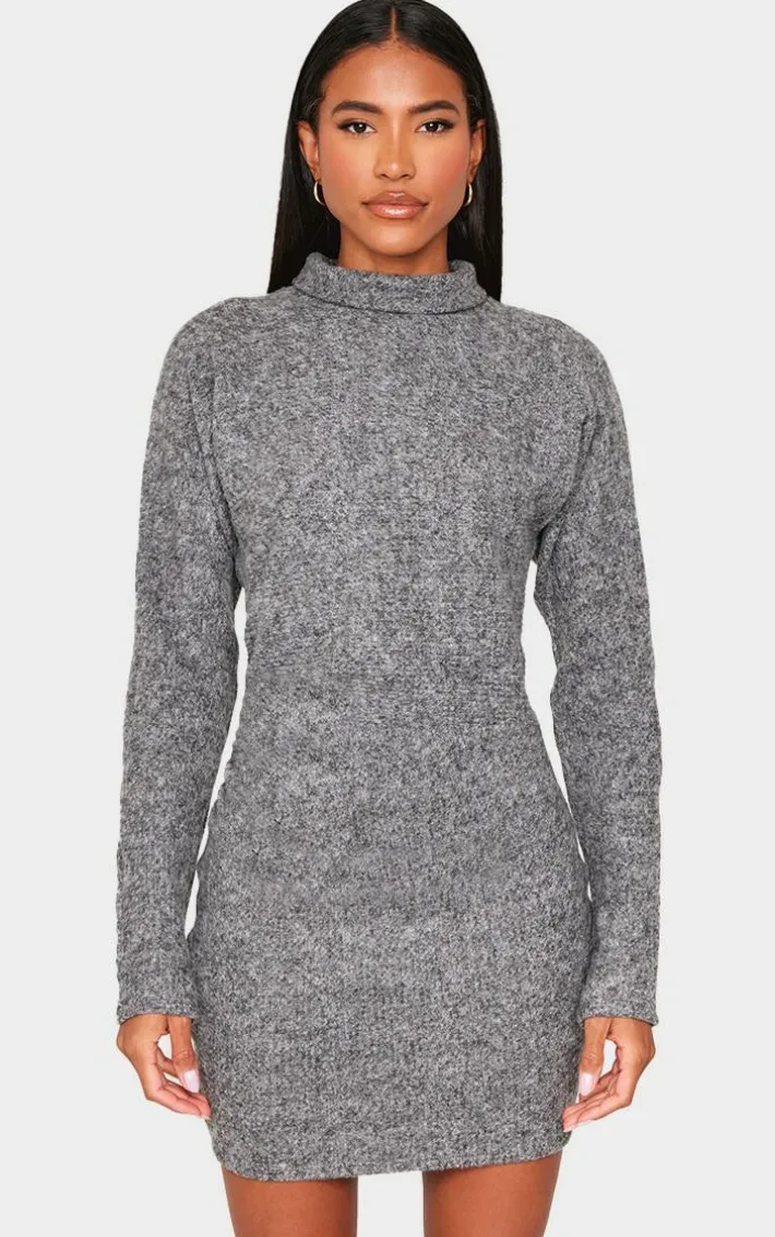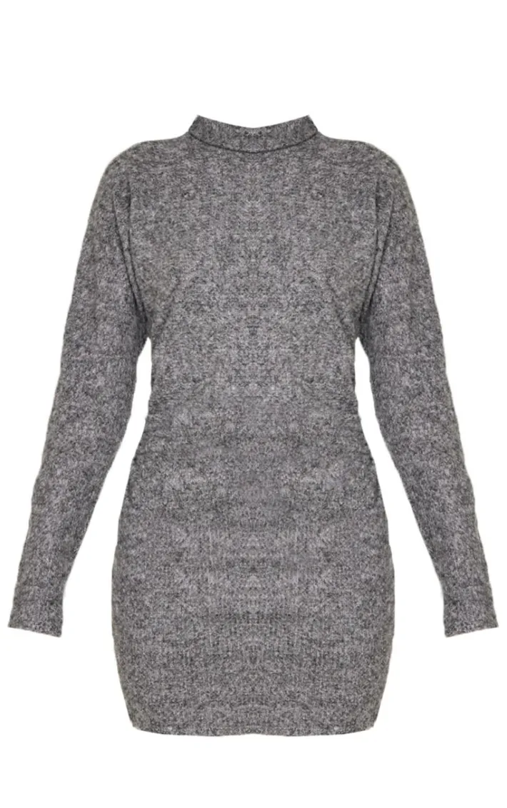 Take the stress out of weekend styling with this charcoal slouchy ruched detail high neck bodycon dress. Brought to you in a charcoal hue material with a high neckline, a slouchy design and ruched detailing, we are obsessed. Style this bodycon dress with knee length heeled boots and accessories for a look that will steal all the stares.