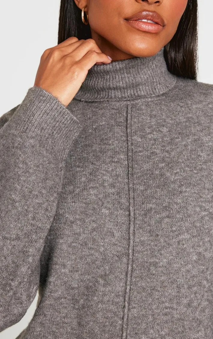 Take the stress out of everyday styling with this charcoal soft knit roll neck oversized seam detail sweater dress. Brought to you in a charcoal soft knit material with a roll neck design, seam detailing and an oversized fit, how can you go wrong? Just add heeled boots and a mini bag to elevate the look.