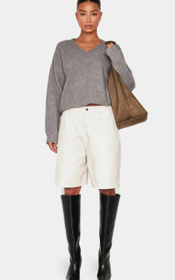 Don’t sacrifice style for warmth with this charcoal soft knit V neck oversized sweater. Brought to you in a charcoal hue soft knit material with a V neckline and oversized fit, this sweater is all the new you need. Style with white oversized shorts, knee high boots and a faux suede bag for an on-trend A/W look we can’t take our eyes off.