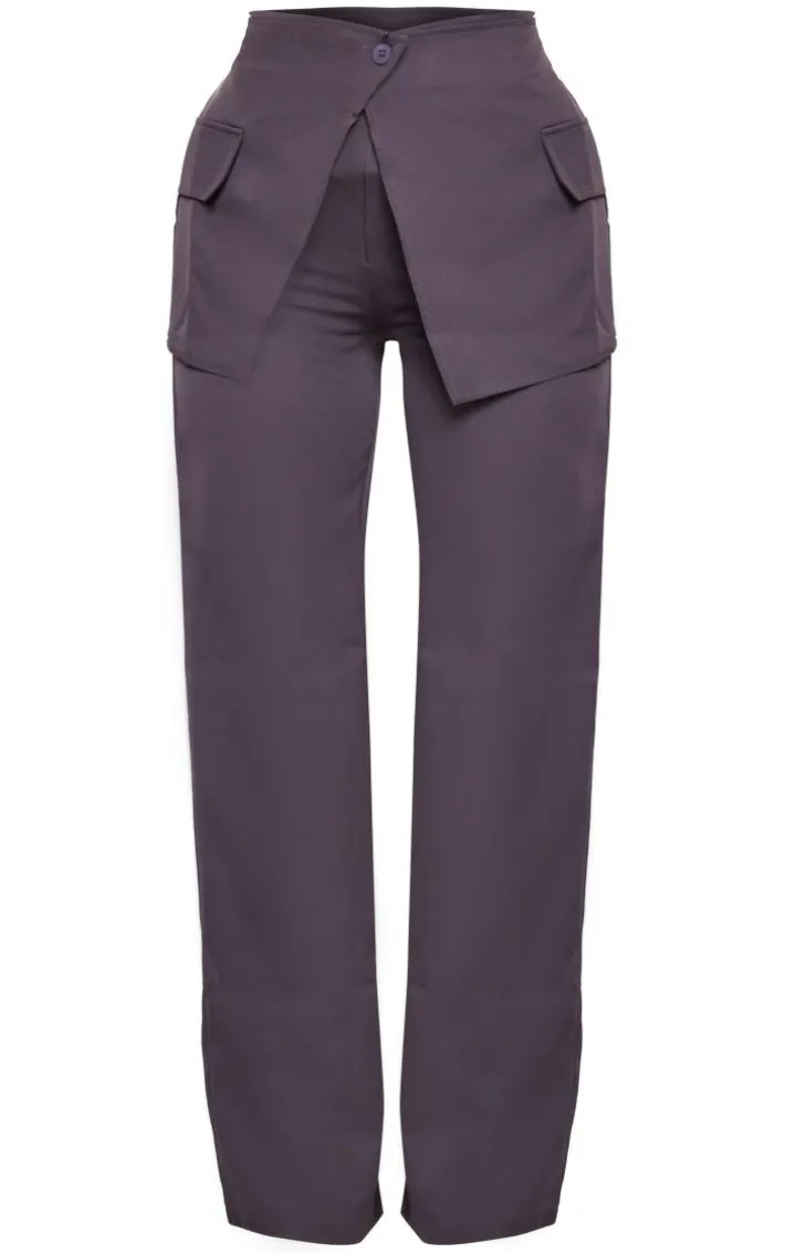 Get ready for your next night with the dolls with these charcoal tailored skirt overlay straight leg pants, we’re seriously obsessed. Brought to you in a charcoal hue material with a skirt overlay design and a straight leg fit, these tailored pants will earn you all the likes. Style with a bandeau top, clear slip-on heels and a shoulder bag for a fool proof finish.