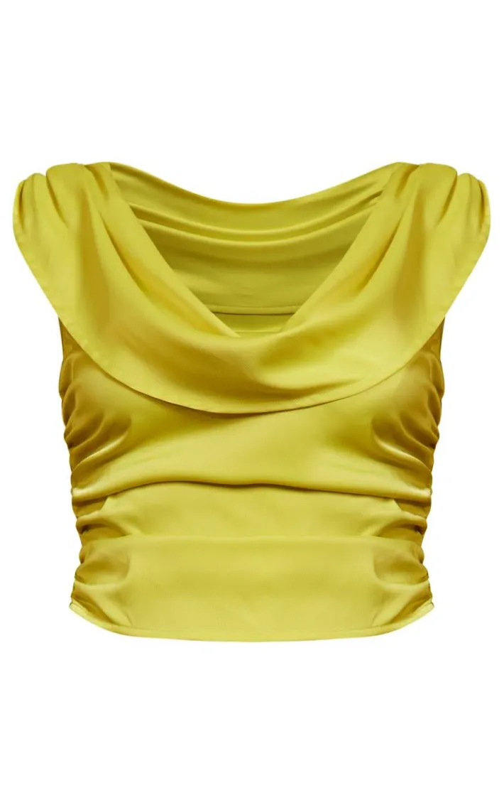Add some luxe vibes to your wardrobe with this chartreuse satin cowl neck top. Brought to you in a chartreuse satin material with a cowl neck design, you will not blend in with thus top. For those upcoming occasions, this cowl neck top is perfect for you. Style with the matching skirt and your fave heels to elevate the look even further.