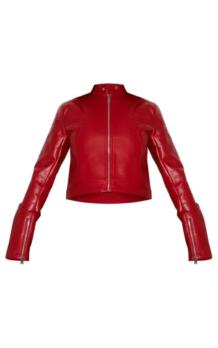 You are guaranteed to earn some serious style points in this cherry red faux leather cropped biker jacket. Brought to you in a faux leather material with a zip up fastening and a cropped fit, how can you go wrong? This biker jacket features a cherry red hue that we just can’t get enough of right now. Style seamlessly with a mini skirt, crop top and slip-on shoes to add a statement finishing touch to any look.