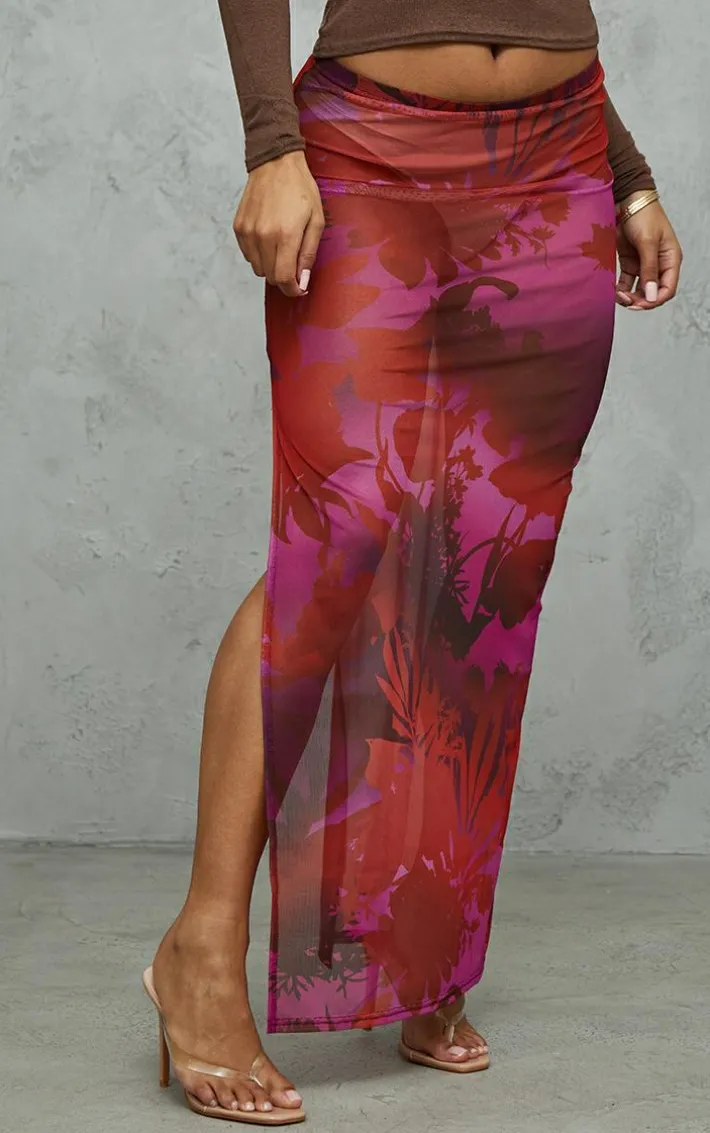 Give your weekend wardrobe the ultimate chic upgrade with this cherry red floral print mesh split hem midi skirt, get ready to earn all the style points. This skirt is made with a cherry red floral print mesh material with a split hem design and a midi length, how could you not be in love? Pair with a basic long sleeve top and your fave heels for a dreamy date night look we can’t get enough of.