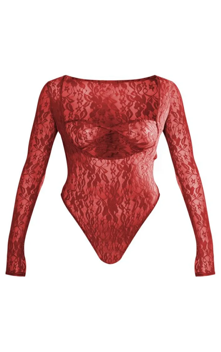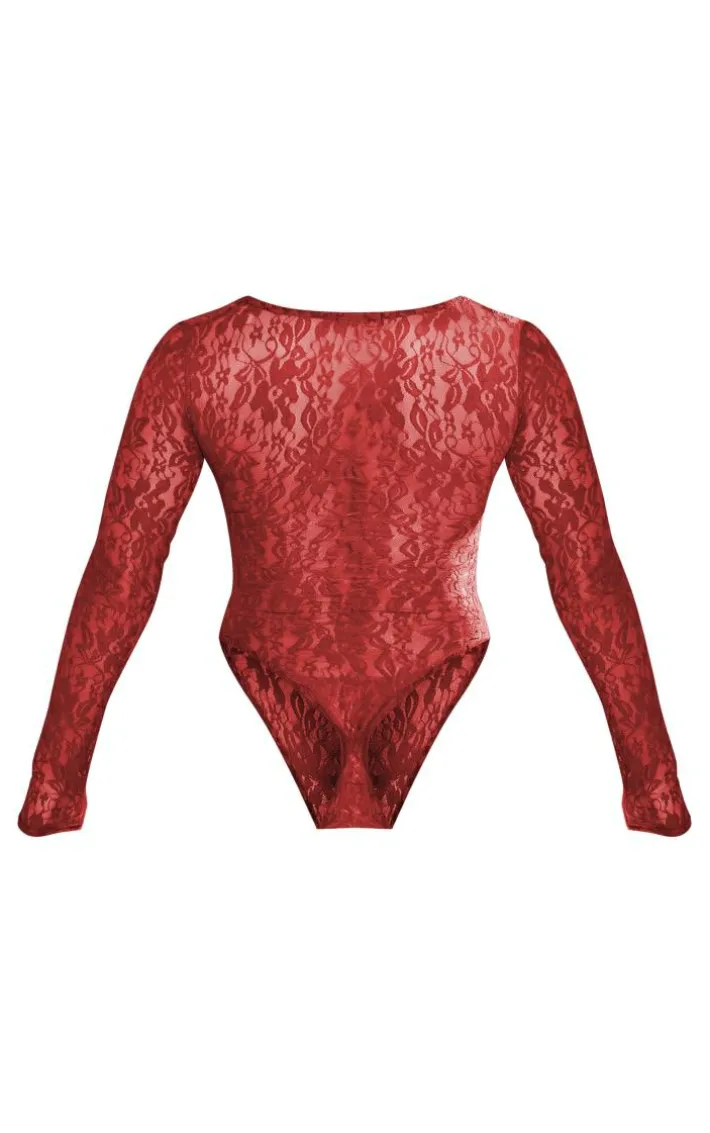 Got a special occasion penciled into your diary? Well, we’ve got you covered with this cherry red lace bandeau detail long bodysuit. Brought to you in a cherry red lace material with a bandeau detail, you are sure to bring all the fierce vibes, how could you say no? This long sleeve bodysuit will have you setting trends wherever you step foot. For a flawless finish team this with a metallic mini skirt and some clear heels. It’s everything we’re loving right now.