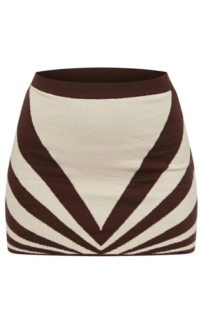 Inject some of this seasons must-have print into any look with this chocolate abstract two tone knit mini skirt. This skirt is made from a chocolate hue material with an abstract two tone design for a statement look that wont go unnoticed. In a knit material what’s not to love? Why not swap your usual skirt for this mini skirt, you will have heads turning. Team with the matching top and a pair of knee high boots for a glam look everyone is loving this season.