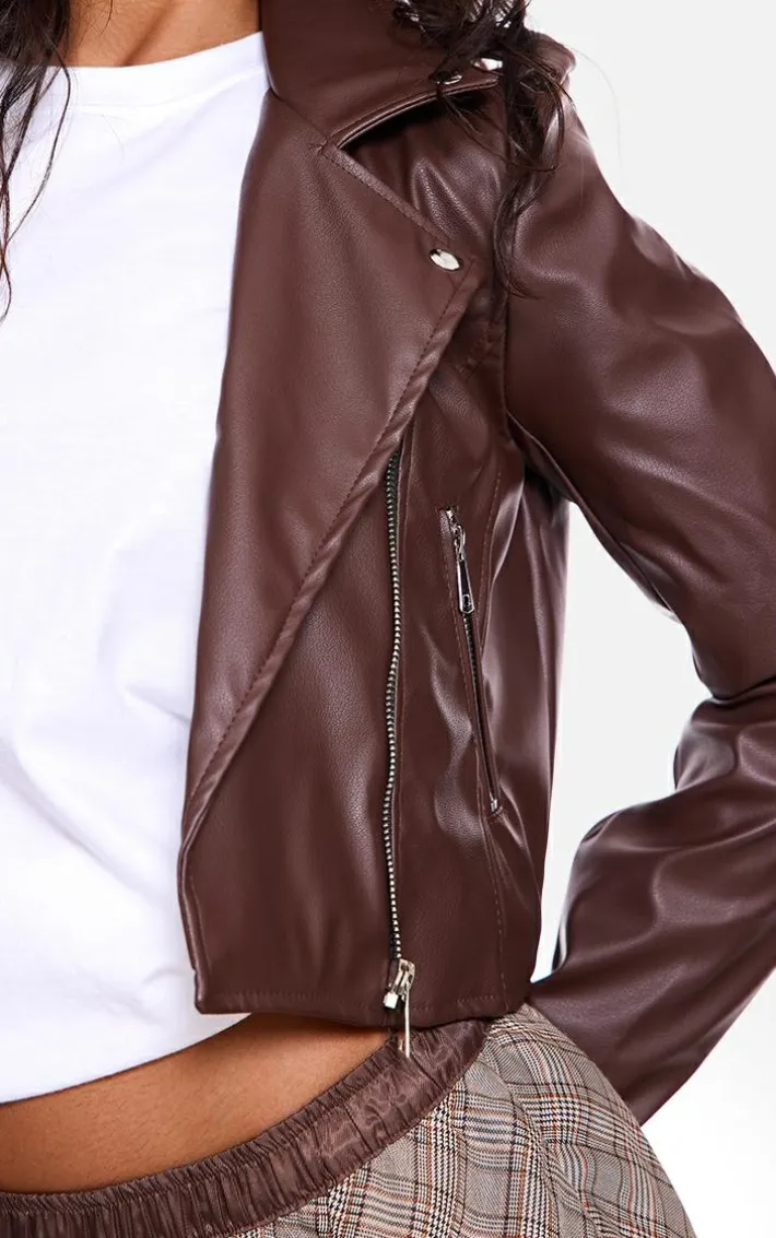 You are guaranteed to add some edge to your look of the day with this chocolate basic faux leather biker jacket. Made from a chocolate faux leather material with zip detailing and an on-trend biker style, what’s not to love? Layer this biker jacket over a white tee, puffball skirt and knee high chunky boots for an effortless everyday look we’re loving.
