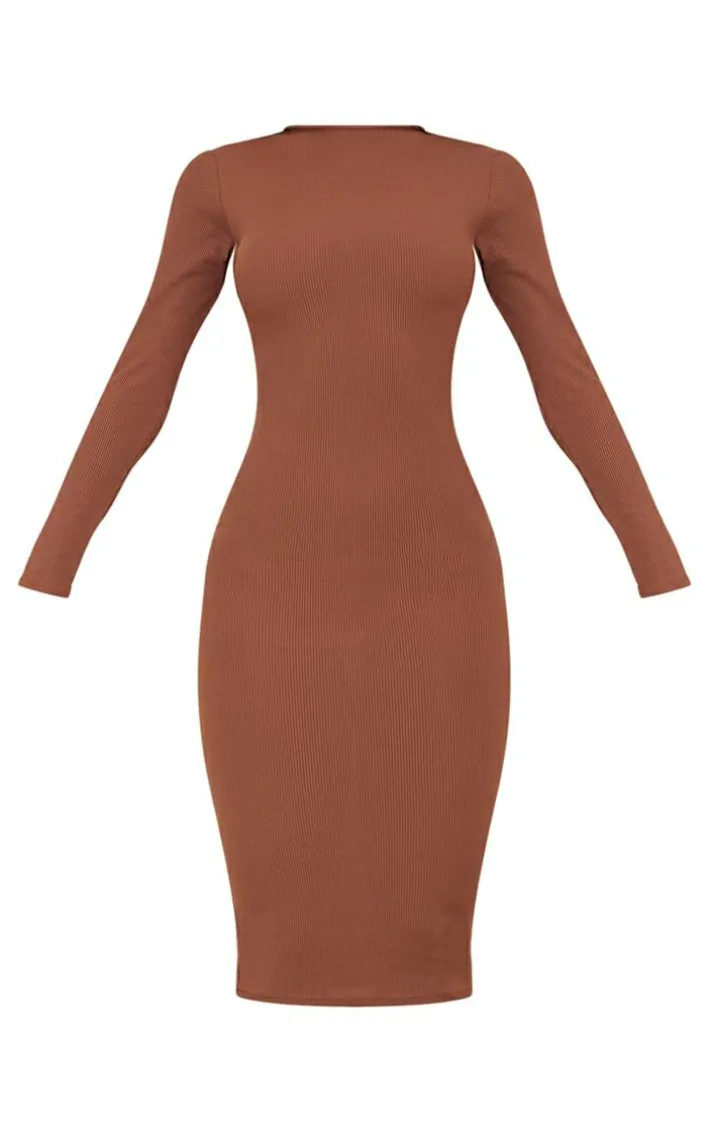 Add this season’s must-have hue to your look with this midi dress. Featuring a chocolate ribbed material with long sleeves and a midi length, we’re obsessed. Team this with barely-there mules and minimal accessories for a combo we are crushing on.