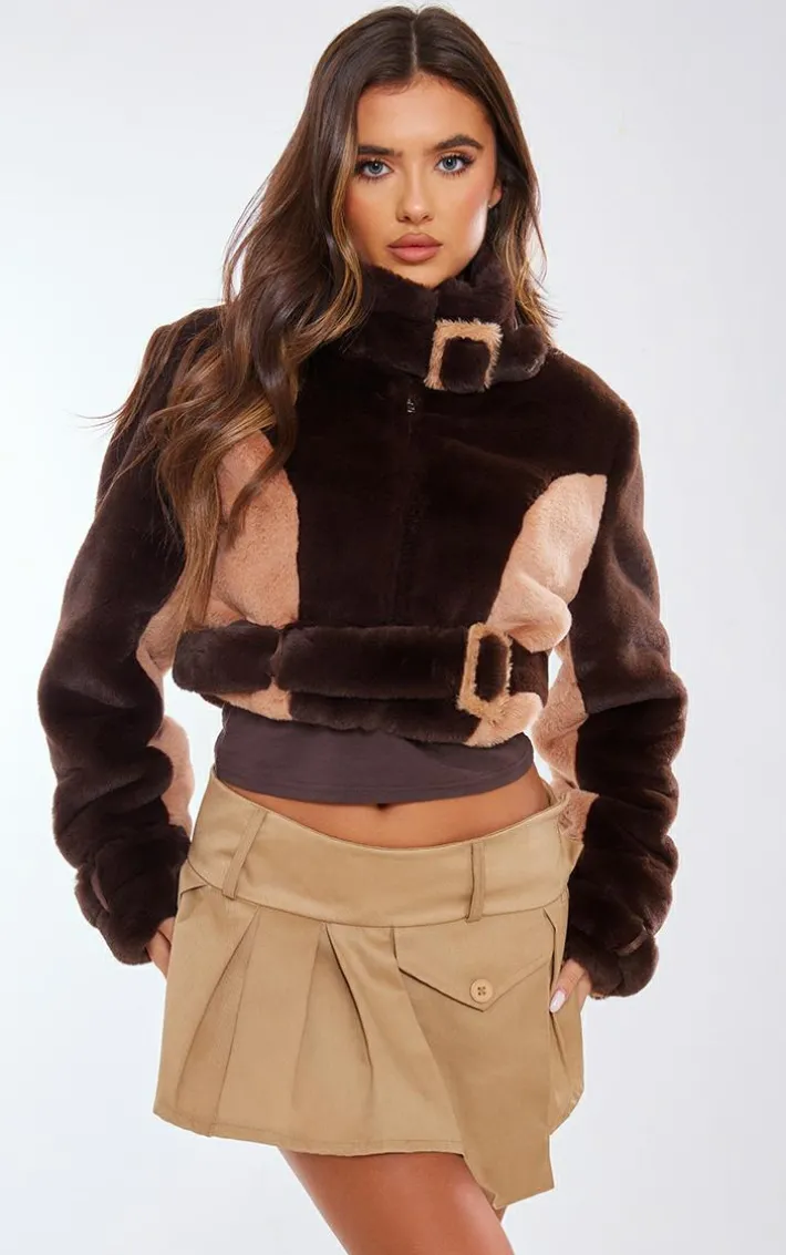 Your outfit of the day is sure to go to a whole new level with this chocolate belted collar and hem cropped faux fur coat. Brought to you in a chocolate faux fur material with belted collar and hem detail, what more could you ask for? Perfect for elevating your look from 0-100, this coat is sure to tick all the boxes. Team with a mini skirt, knee-high boots and your fave accessories for a fool-proof finish.