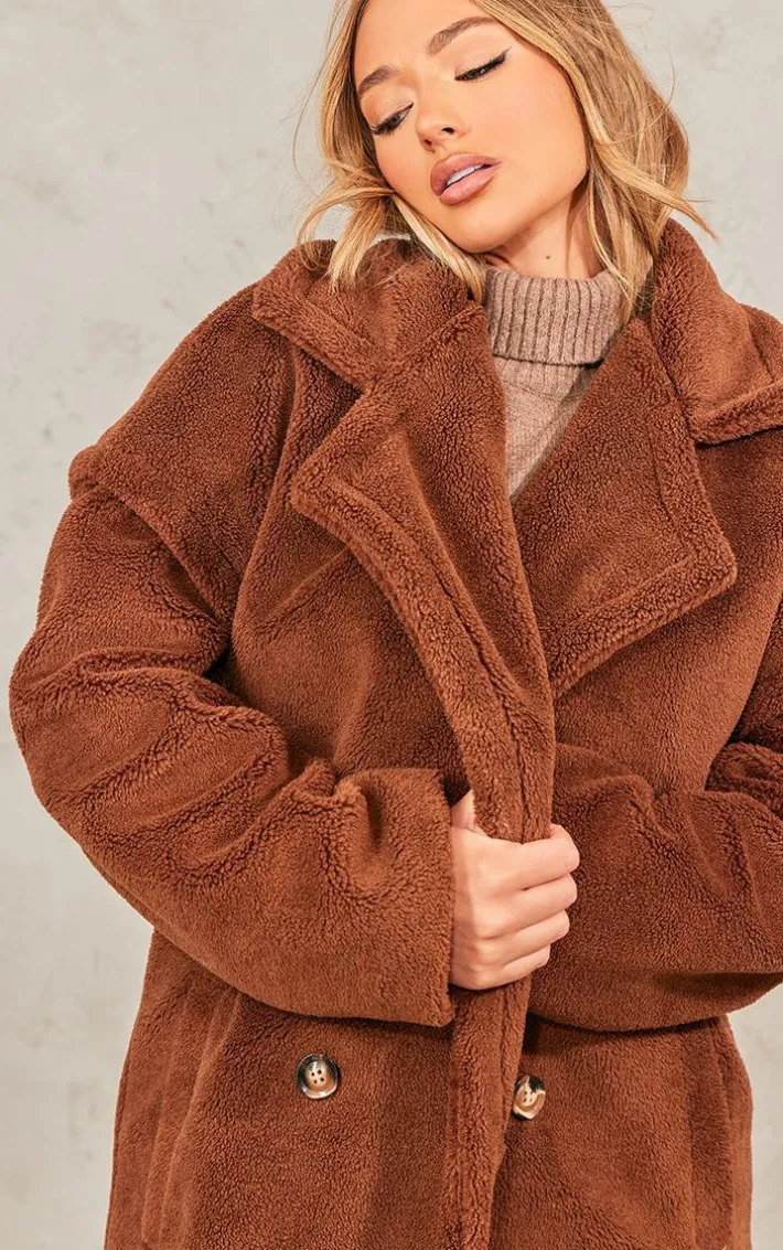 Set trends this A/W season with this chocolate borg teddy bear coat. This coat is brought to you in a chocolate borg material with a midaxi length and a comfy fit, what’s not to love? This coat is everything you need for your everyday styling. Complete the look and wear this with your outfit of the day for a blogger-worthy combo.