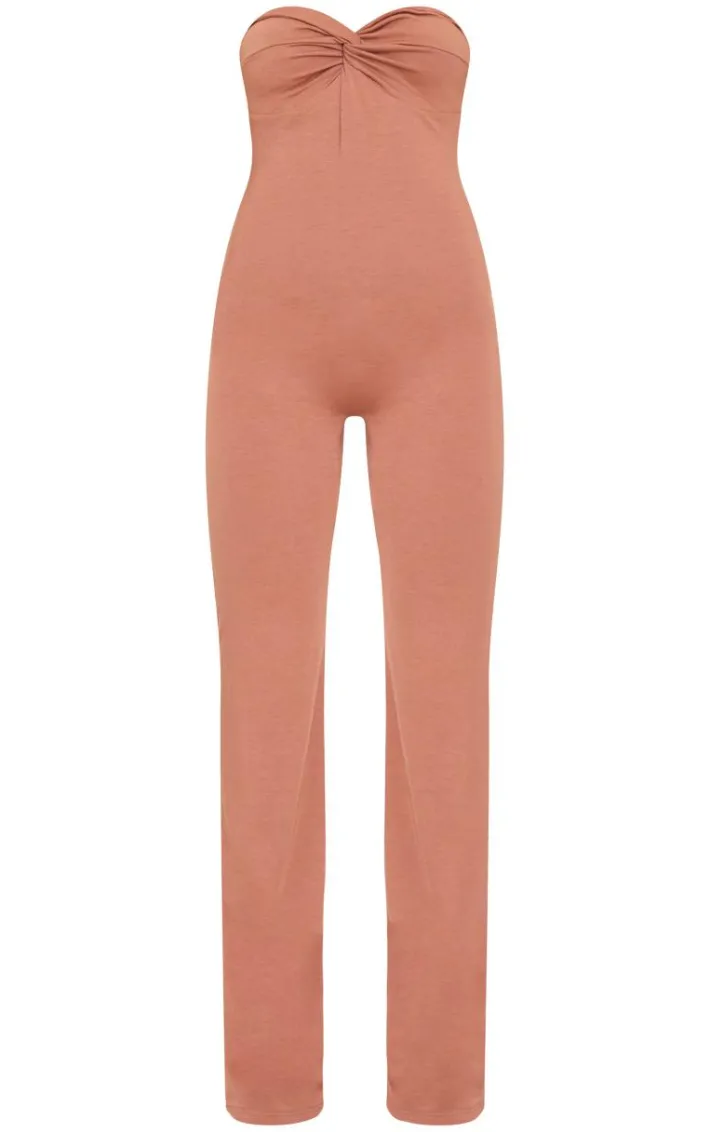 Turn heads for all the right reasons in this chocolate double layer contour jersey twist bandeau jumpsuit. Brought to you in a chocolate double layer contour jersey material with a twist detail and bandeau neckline, this jumpsuit is calling your name. Style with nude heels and gold accessories for a figure-flattering finish. It’s a yes from us.