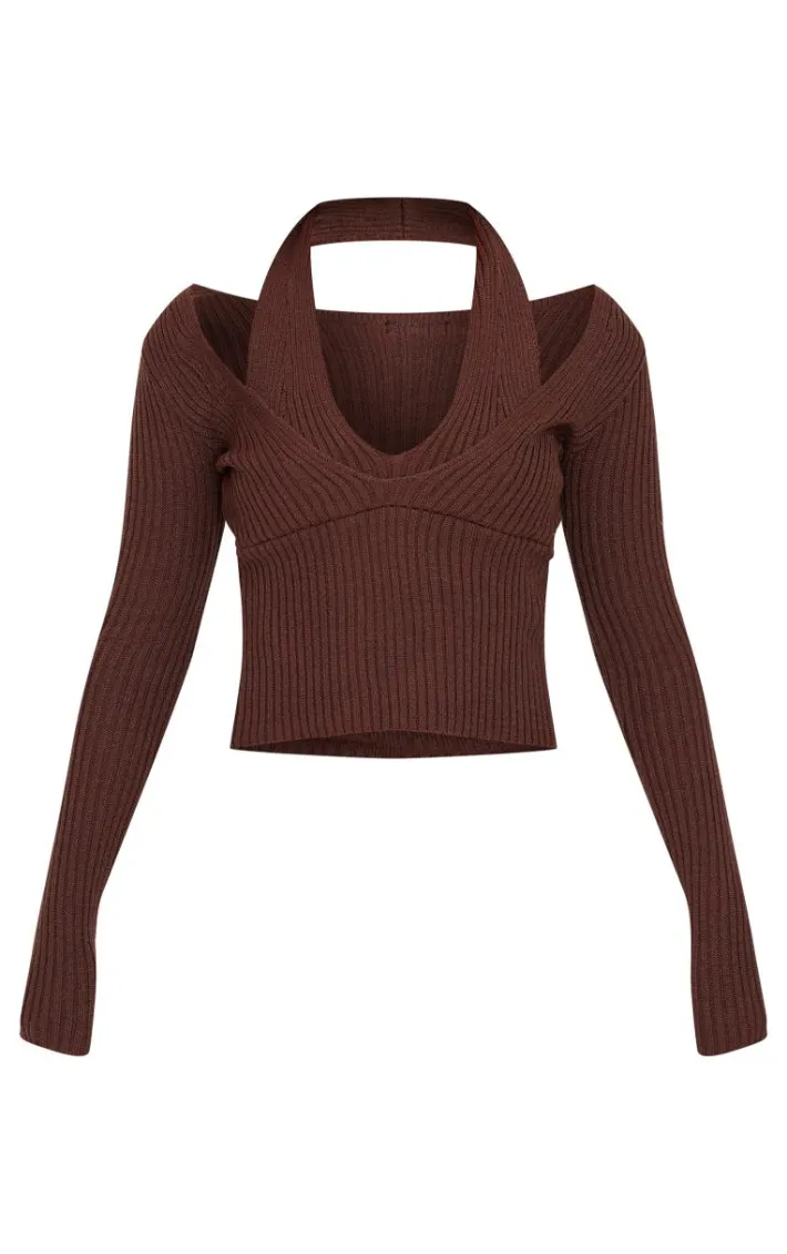 Upgrade your knitwear collection with this chocolate double layer rib knit long sleeve top. Brought to you in a chocolate hue rib knit material with long sleeves and a double layer design, what’s not to love? Team this chocolate top with shorts and chunky boots for a look that will earn you some serious style points this season.