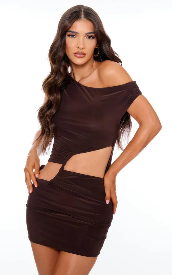 When the weekend calls so does this chocolate double layer slinky twist front mini dress. Brought to you in a chocolate double layer slinky material with a twist front detail, this mini dress is a must have for your new season wardrobe. Team with gold hoops and your highest heels for a look that won’t go unnoticed.