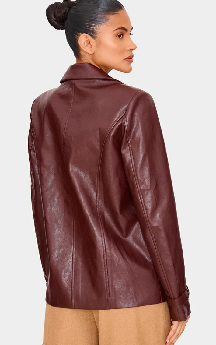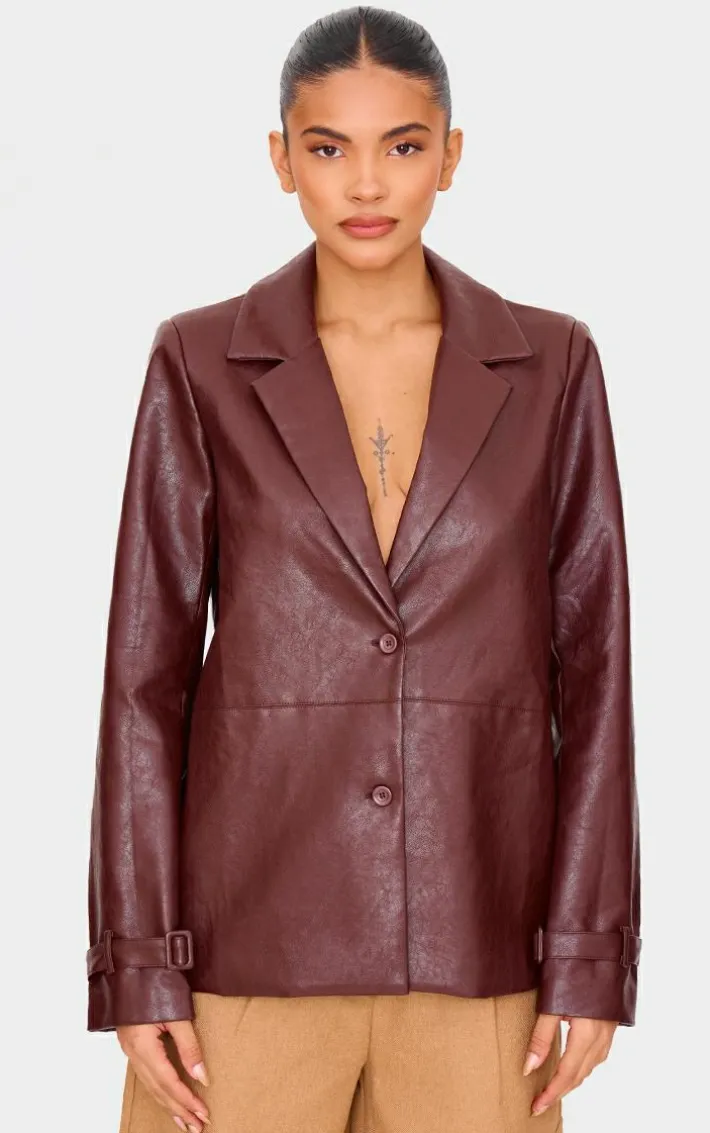 You can never have too many blazers in your collection, that’s why we’re bringing you this chocolate faux leather blazer. With its seasonal chocolate tone, faux leather material and the ultimate blazer fit, what’s not to love? Team with a pair of heels and wide leg tan pants for a look like no other.
