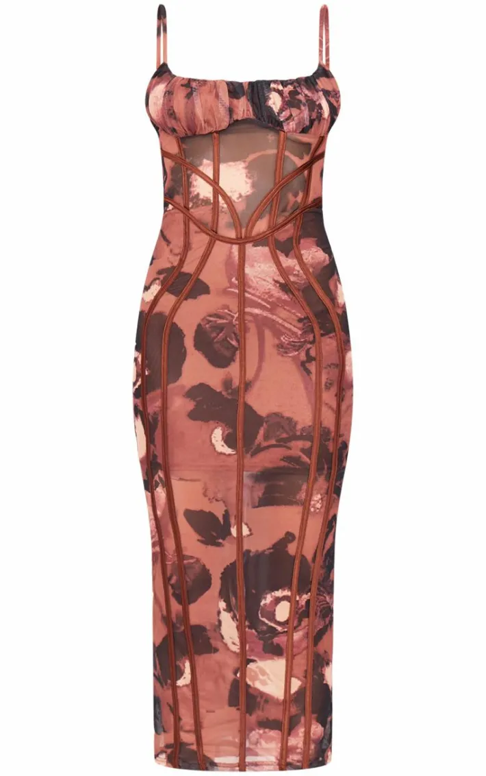 Solve those what to wear dilemmas with this chocolate floral print mesh binding detail midaxi dress. Brought to you in a chocolate mesh material with a floral print design and a binding detail, it’s a definite yes from us. Team this midaxi dress with a pair of court heels and minimal accessories to feel chic this season.