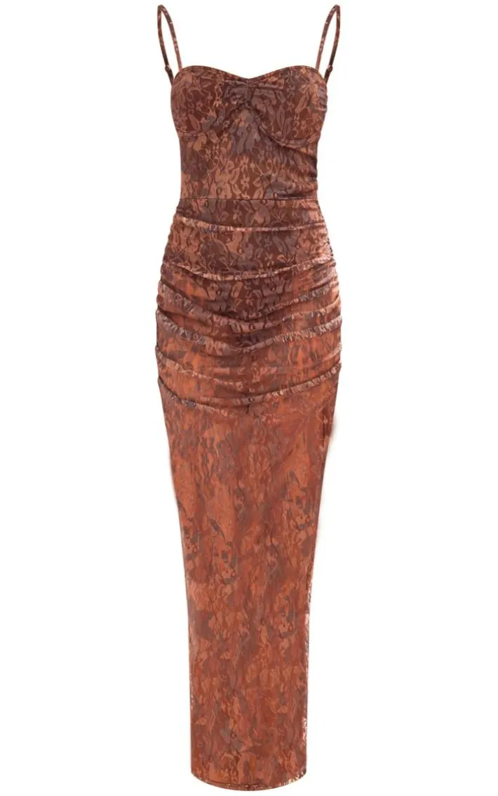 Have eyes on you for all the right reasons with this chocolate floral printed lace underwired ruched maxi dress. Brought to you in a dreamy chocolate floral print material with a flattering underwired design and lace detailing for that extra touch of luxe, how can you not fall in love? Style this ruched maxi dress with heels and gold accessories for an occasion look that is sure to earn you all the compliments.