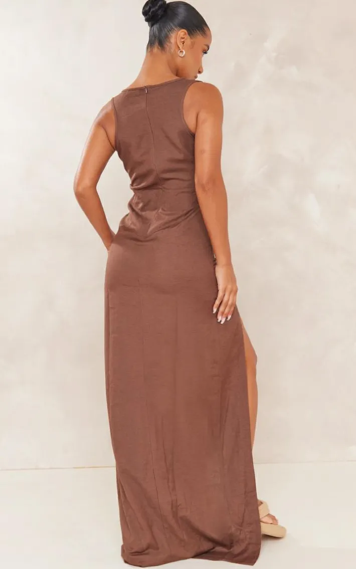 Take your weekend wardrobe to new heights with this chocolate linen look lace-up eyelet detail maxi dress. Brought to you in a chocolate linen look material with a lace-up fastening and eyelet detail, what’s not to love? This maxi dress will catch everyone’s attention and is sure to steal the show, how could you say no to that? Style this maxi dress with platform sandals and gold accessories for a dreamy finish.
