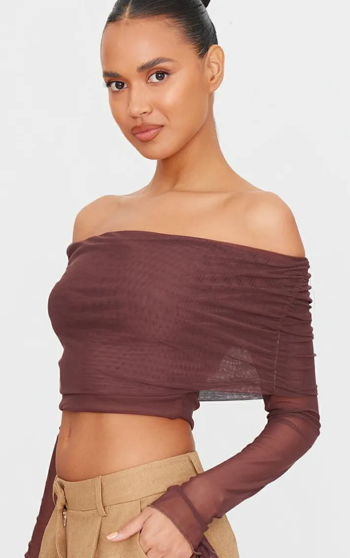 Take a chance on this chocolate mesh ultra long drape sleeve crop top for a look you won’t regret. Brought to you in a rich chocolate shade, with a mesh material and drape sleeve design, this top was made to be seen. Style with a pair of tan pants and minimal accessories for a chic finish.