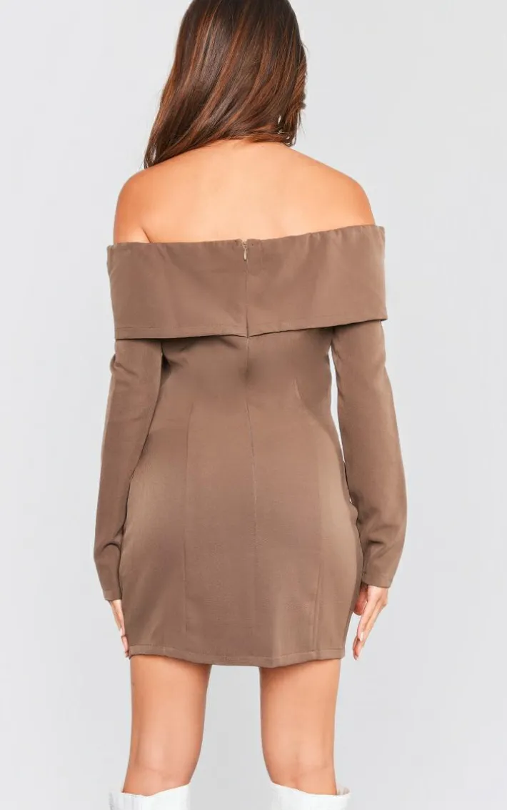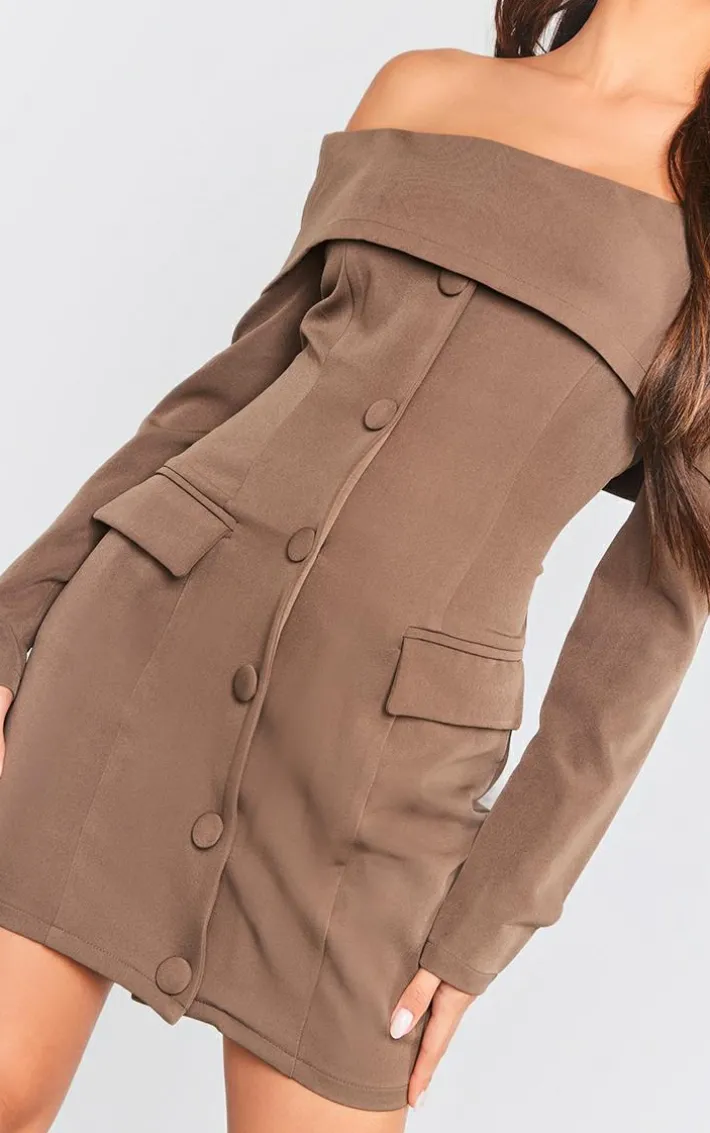 Your outfit of the day has never looked so on-point with this chocolate off shoulder button front shift blazer dress. This blazer dress is brought to you in a chocolate material with an off-the-shoulder design and a button front, what’s not to love? This shift dress with its blazer style will have you setting trends wherever you step foot. Add knee-high heeled boots, a shoulder bag and accessories for a look like no other.