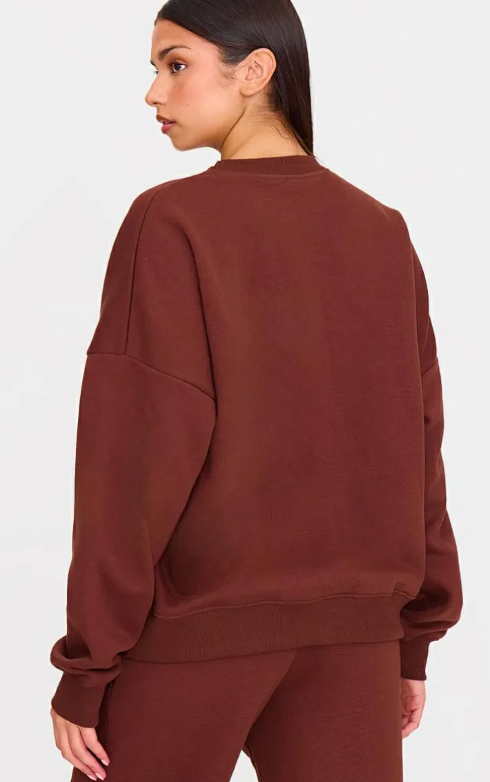 Elevate your casual collection with this chocolate oversized long sleeve Sweatshirt. Brought to you in a chocolate material with an oversized fit and a long sleeve fit, what more could you want? Team this Sweatshirt with the matching sweatpants and your fave accessories to finish off the look everyone is wanting right now.