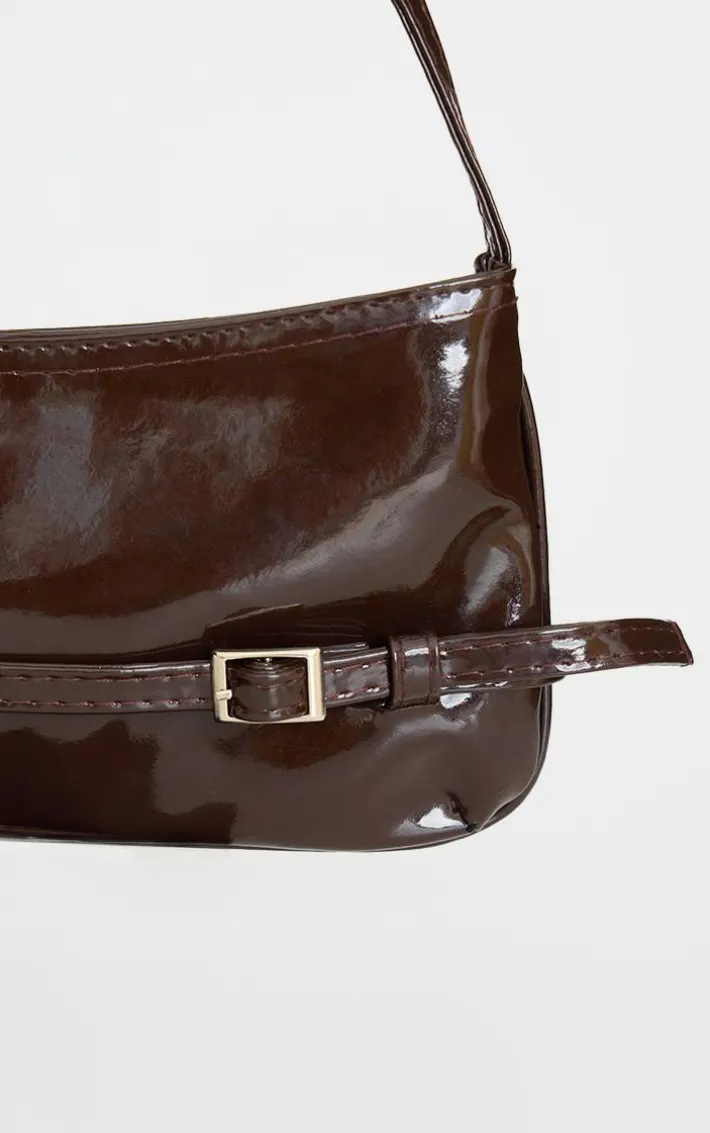 Elevate your style with this chocolate patent PU buckle baguette shoulder bag. Brought to you in a chocolate hue patent PU material with a buckle detail and baguette design, this shoulder bag is all the new you need. How can you resist? Add to your outfit of the day for a chic finish.