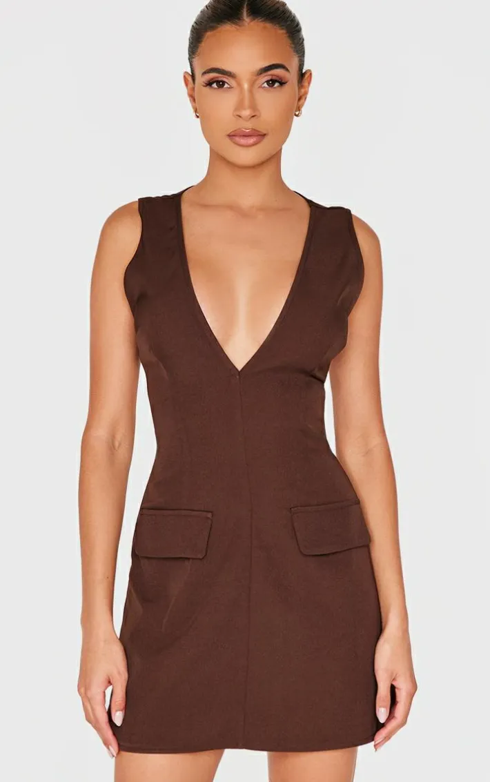 Introducing this chocolate plunge pocket detail mini dress as this season’s must-have. Brought to you in a chocolate hue material with a plunge neckline and pocket detail, this mini dress is all the new you need. Style with slip on heels and simple accessories for a chic finish we can’t take our eyes off.