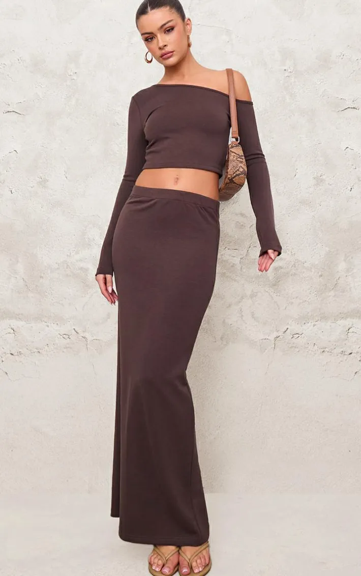 Say hello to your new season staple with this chocolate premium soft touch long sleeve top. Brought to you in a chocolate premium soft touch material with a long sleeve design, perfect for those day to night looks and beyond. Team with the matching maxi skirt and your fave heels to elevate your weekend look even further.