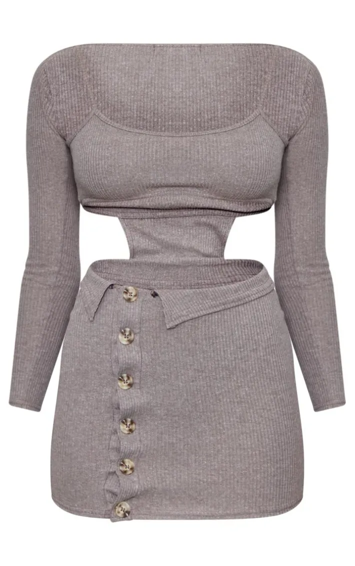 The weekend is calling and so is this unreal dress. Featuring a chocolate ribbed material with a cut-out waist, button detailing and a figure-admiring fit, we’re in love. Wear with your trendy high heels and gold accessories for a glam finish.