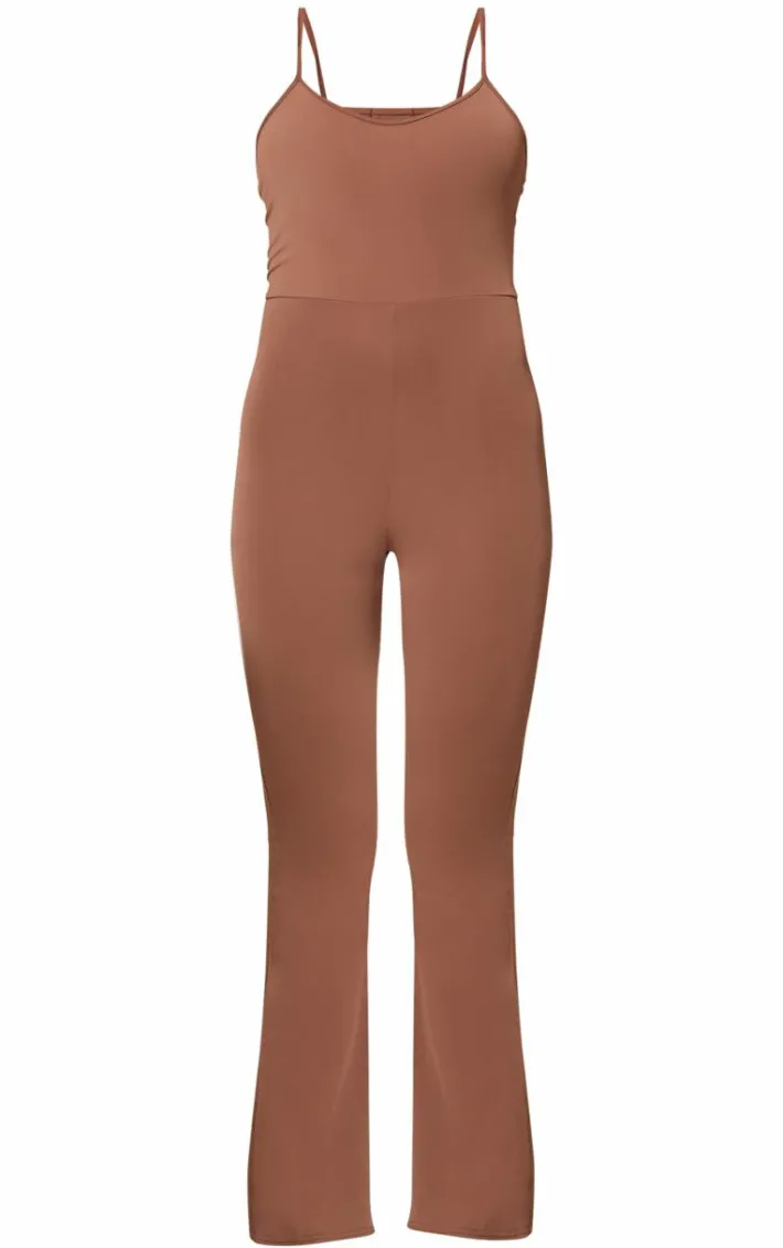 Switch up your new season style game for the new season with this chocolate sculpt strappy wide leg jumpsuit. Brought to you in a chocolate hue sculpt material with thin straps and a wide leg fit, how can you resist? Team this wide leg jumpsuit with sneakers, a matching hue Sweatshirt and simple gold accessories for an off-duty look that is sure to make heads turn.