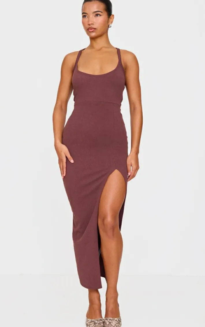 Make weekend styling look effortless with this chocolate soft rib cut out tie back midaxi dress. Brought to you in a chocolate hue soft rib material with a cut out tie back design and a figure-flattering midaxi fit, how can you resist? Style this midaxi dress with slip on heels and gold earrings for a look that is sure to have all eyes on you.