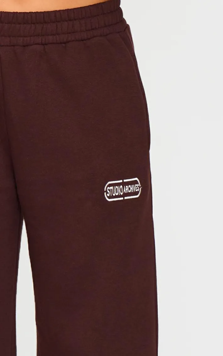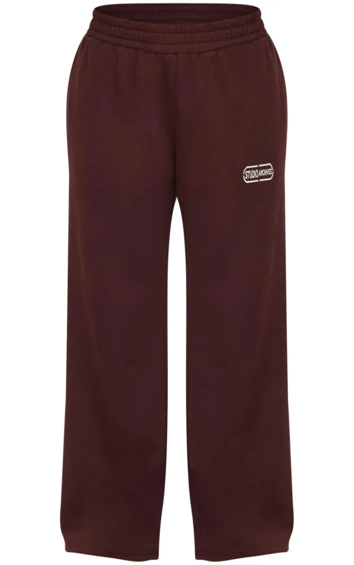 Keep it effortlessly chic this A/W season with these chocolate studio archives embroidered wide leg sweatpants. Brought to you in a luxe chocolate hue, with a ‘studio archives’ embroidered design and flattering wide leg fit, you really can’t go wrong. Style with the matching hoodie and pair of sneakers for a fool proof finish.