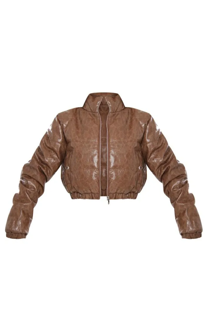 Keep it chic this season with this chocolate textured faux leather puffer jacket. It is made using a chocolate textured faux leather material with a puffer style and a zip front design, you won’t be able to resist. Team with some cargo pants, comfy flats and a tote bag for the perfect off-duty fit.