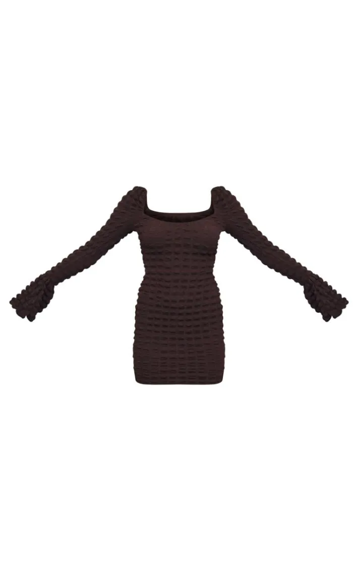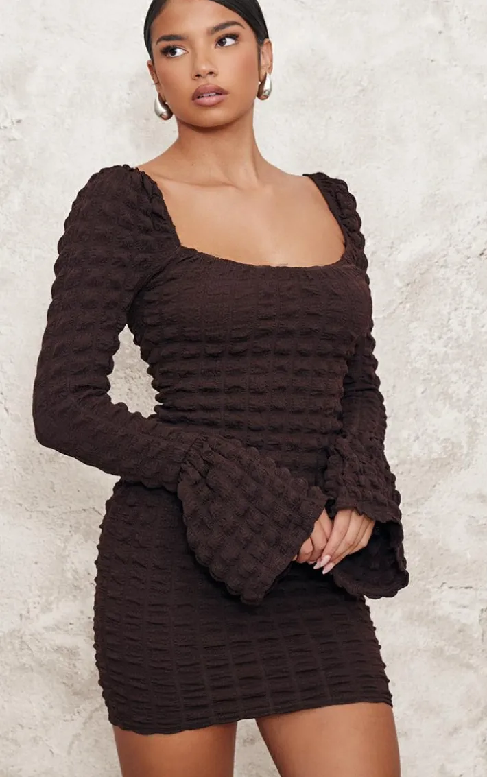 Take the stress out of weekend styling with this chocolate textured flare sleeve bodycon dress. Brought to you in a chocolate textured material with long flare sleeves and a flattering bodycon fit, what more could you need? Style this bodycon dress with chunky boots and gold accessories for a look that is sure to gain all the compliments this weekend.